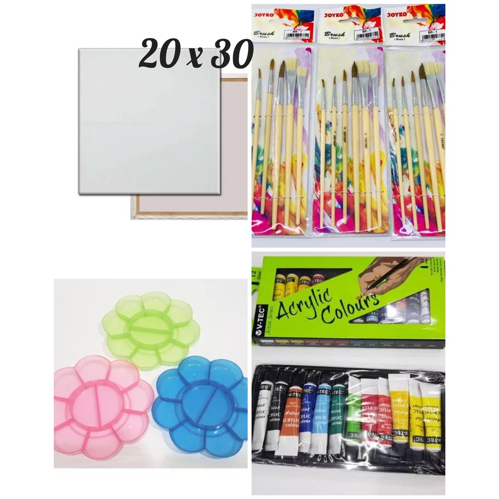 Jual Paket Kanvas Lukis Kanvas 20x30 Kuas Palet Cat Akrilik Shopee Indonesia